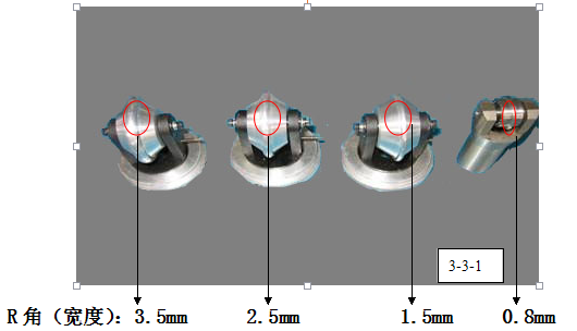 右一:3mm壓輪,適合范圍(3-5)mm以內(nèi),適合材料:瓦楞紙。